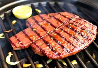 Place the steak on the grill and cook for 4-5 minutes per side for medium-rare, or adjust to your preferred doneness.